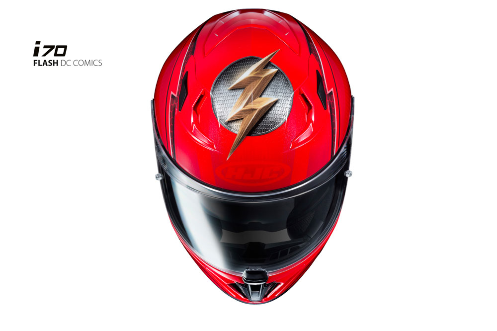 Puede ser que la velocidad alcanzada dentro de un circuito no dependa del casco que uno lleva, pero el i70 Flash tendrá a la gente preguntándose si acaban de ver al mismísimo Flash encima de una moto. Rápido como un rayo, este superhéroe estará representado en el novísimo HJC i70, un casco integral, sport-touring que viene equipado con una gafa solar interior retráctil. La calota es extremadamente ligera y compacta, de diseño moderno y elegante y encaja a la perfección con la gráfica de The Flash. El i70 Flash capta los icónicos y centellantes pernos en contraste con el rojo general de la gráfica.